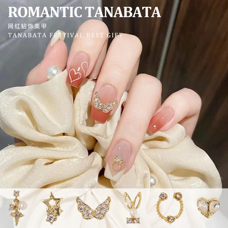 ネットレッドネイルピンクのアクセサリー合金立体軽豪華水晶愛銀色星月流蘇金属チェーン爪