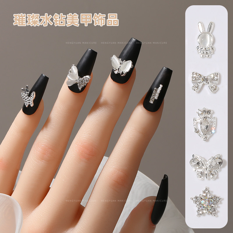 新商品のネイルアクセサリーは猫の目の星のペンダントの大根の爪のダイヤモンドの指輪の蝶結びの真珠のアクセサリーです。