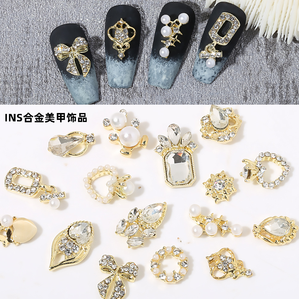 新製品ネイルアートゴールドDIYパールダイヤモンド装飾品漫画ハートリボンネイルアートダイヤモンド合金ダイヤモンド小熊卸売