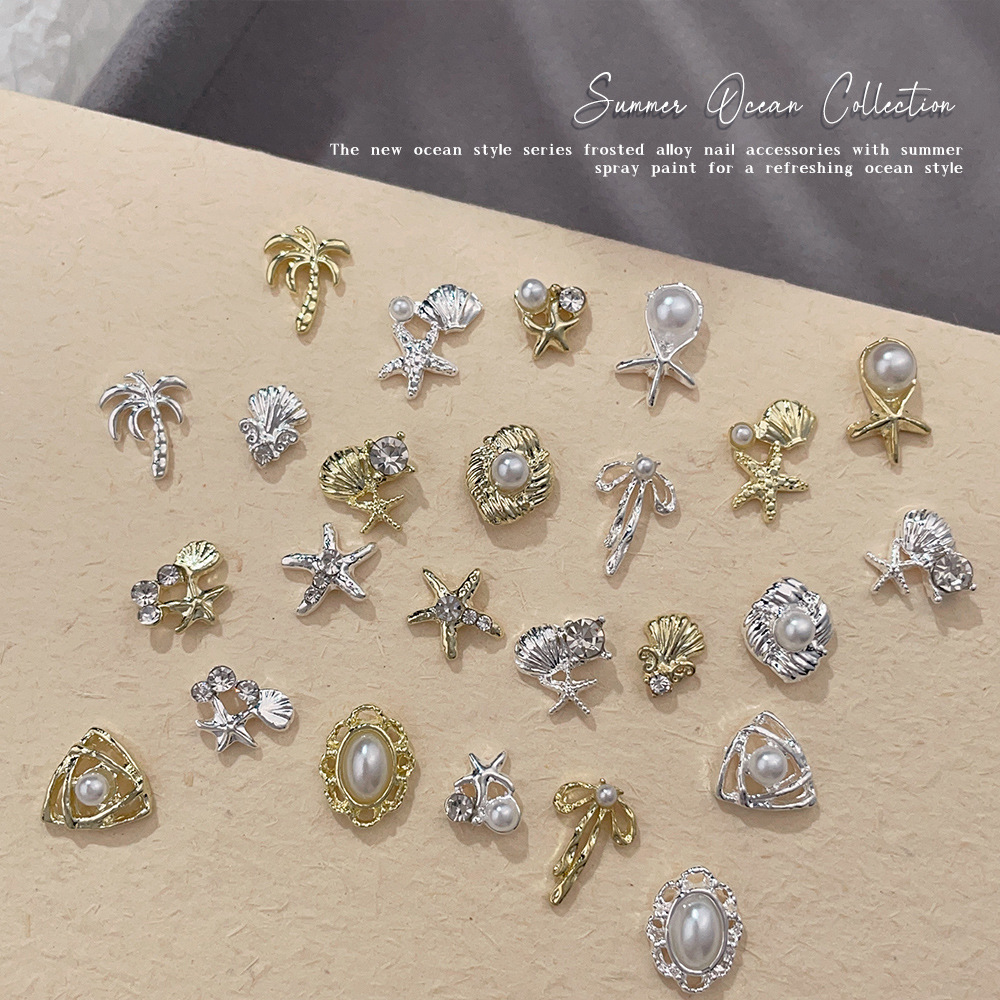 新型海洋シリーズのネイル合金アクセサリーのココナッツの木に貝殻真珠の海星の蝶結びの爪の装飾品を入れます。