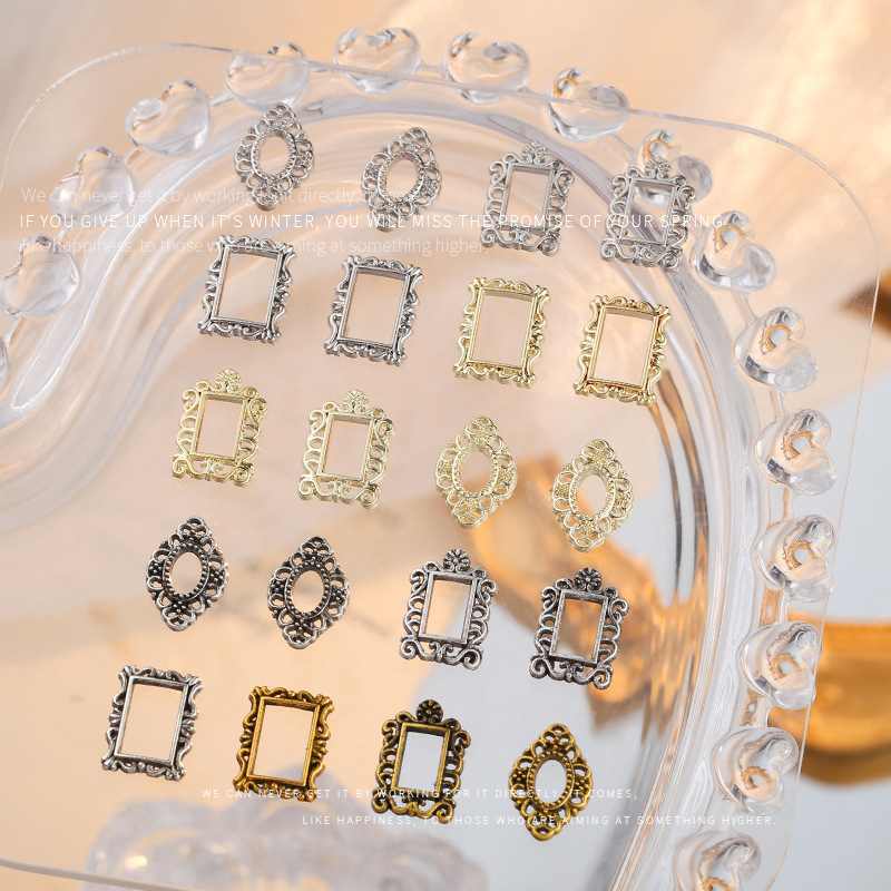 古風ネイルアクセサリー楕円三元フォトフレーム合金卸売りフォトフレームシリーズ立体爪装飾品