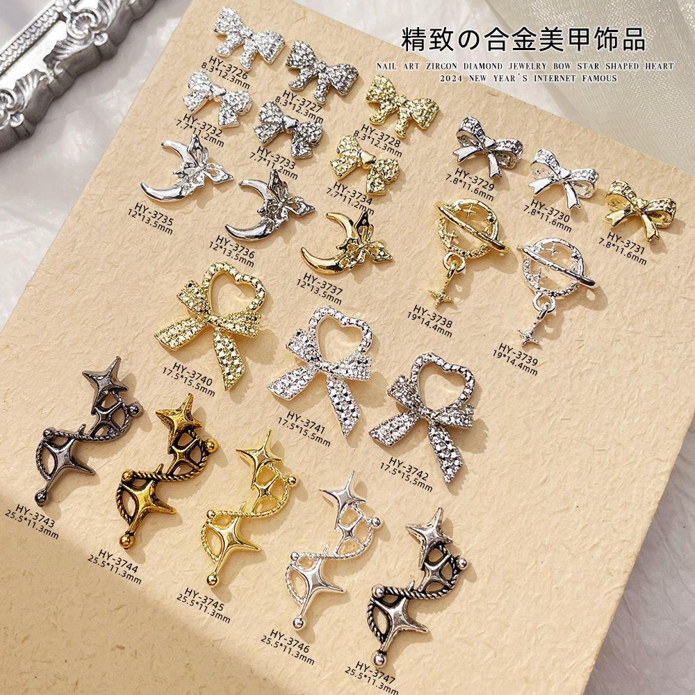 クロスボーダー爆型蝶結び合金ネイルアクセサリー復古パンク星芒月立体星ペンダント爪ドリル
