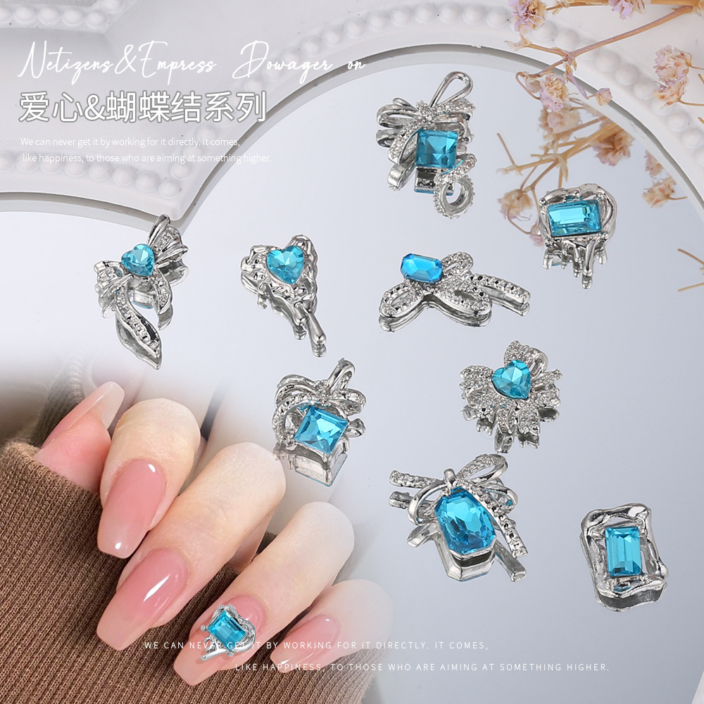 国境を越えた新しいネイルアート蝶銀色金属合金平底日本風ネット赤ドリルDIYアクセサリー卸売り