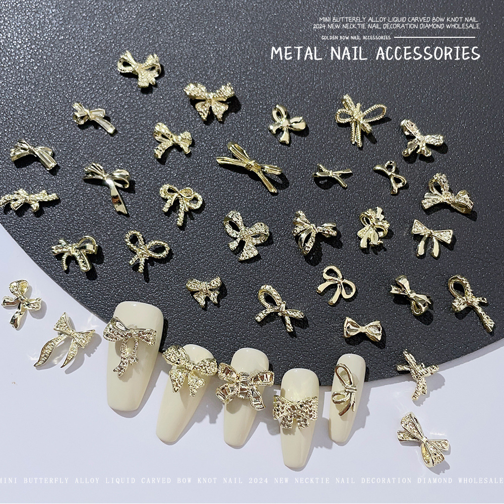 インターネットセレブの立体的な蝶とゴールドのネイルアートアクセサリー、小さな香りのよい蝶ネクタイ、人気のメタル製ウェアラブルネイルデコレーションアクセサリー