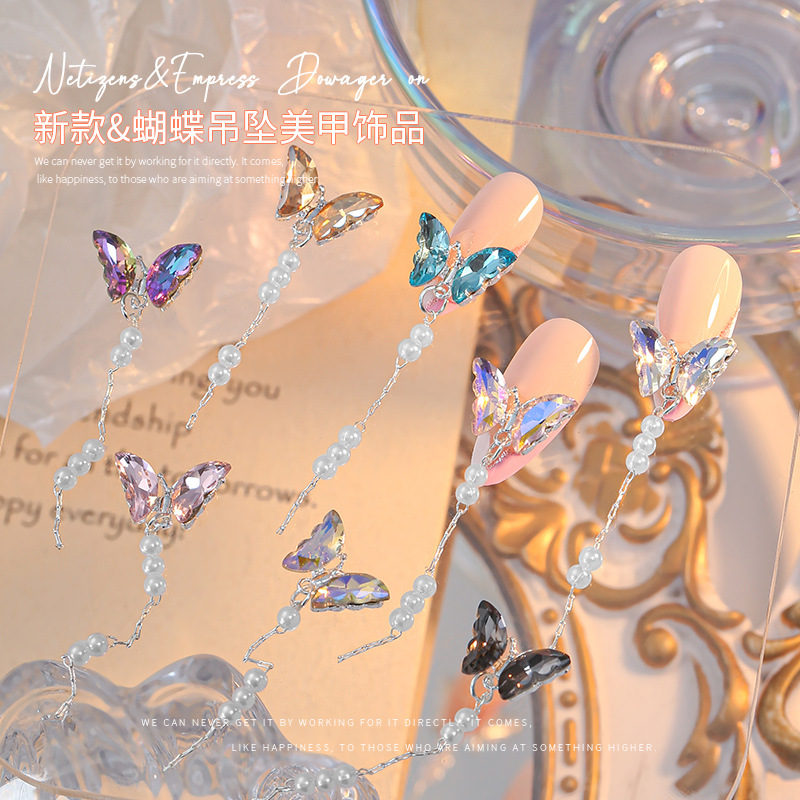 爆金合金水晶蝶真珠ペンダントチェーンネイルアクセサリー