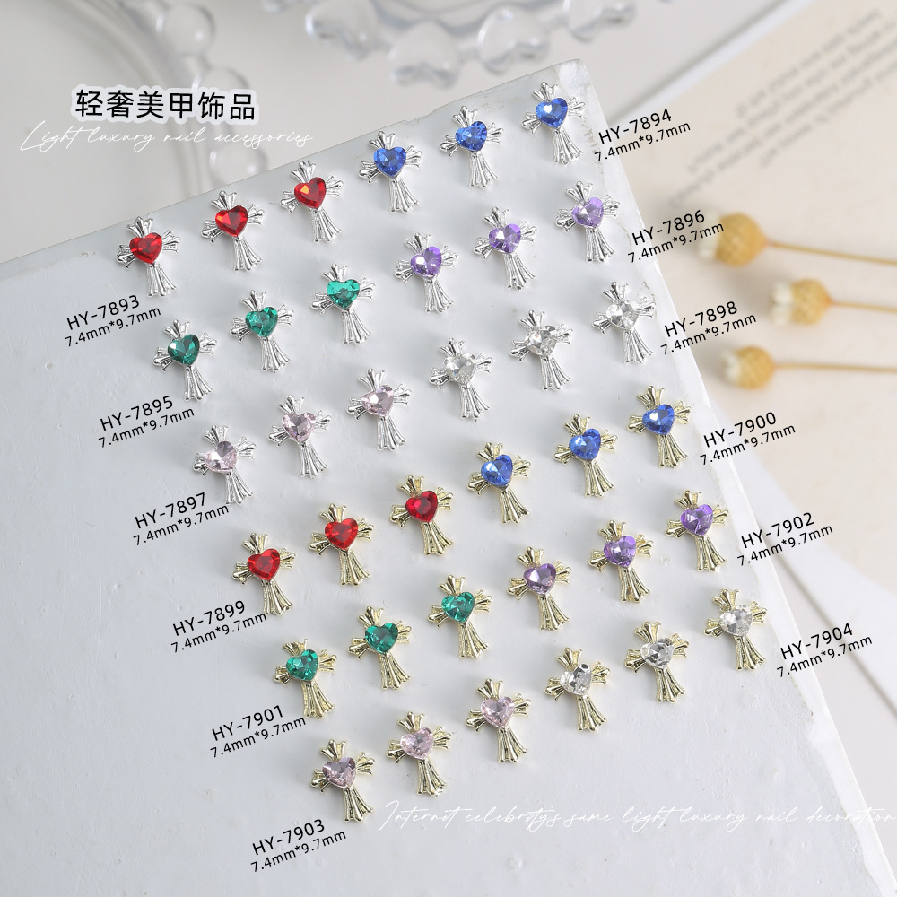 クロスボーダー起爆クロハートクロスネイルアクセサリー超フラッシュ立体カラードリル愛合金爪装飾品