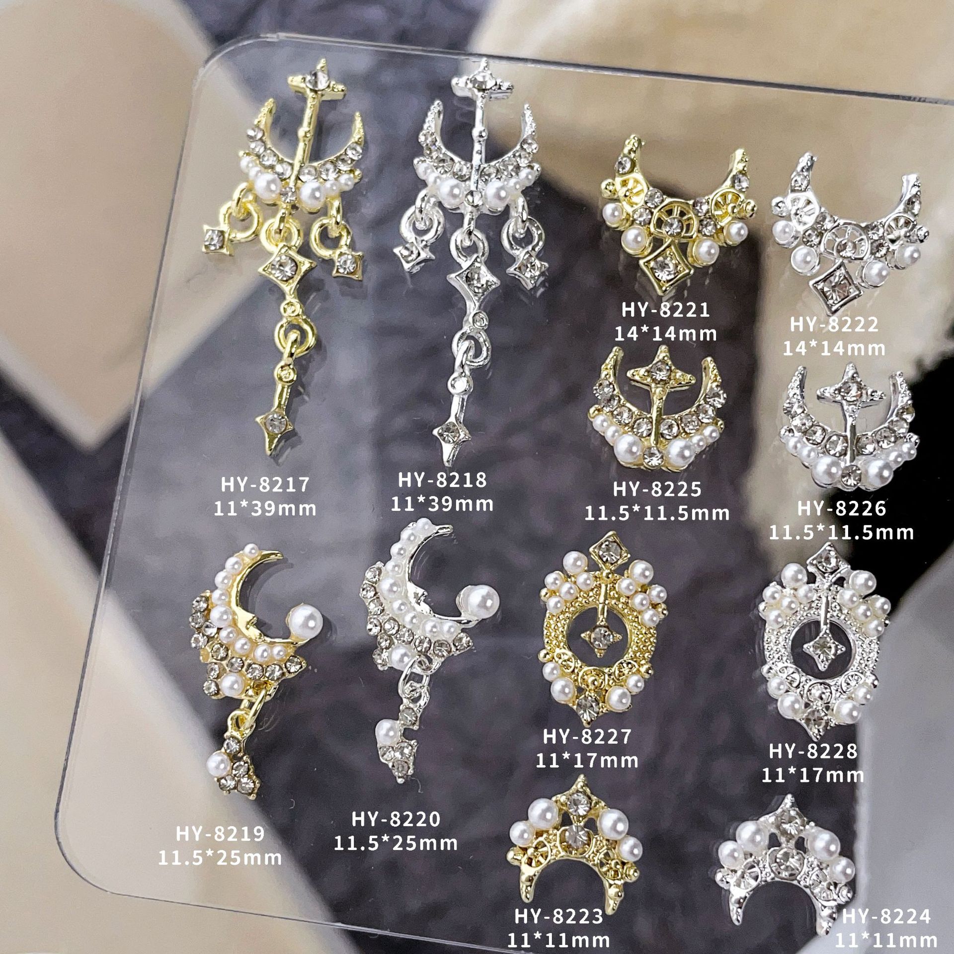 新商品のペンダントのネイルドリルはジルコンの爪の装飾の小さい花の真珠の星の月の愛のフラッシュドリルの合金のネイルアクセサリーをまねます。