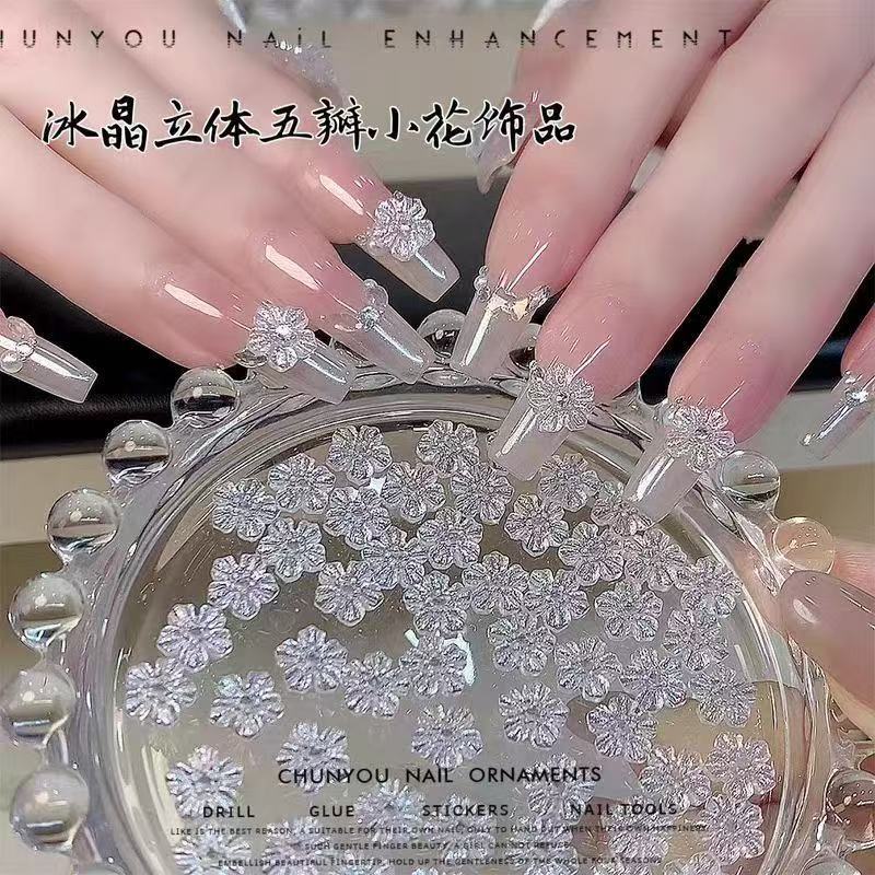 ネット赤立体氷晶五弁花ネイルアクセサリー日系極光氷透花ネイルドリル樹脂爪アクセサリー