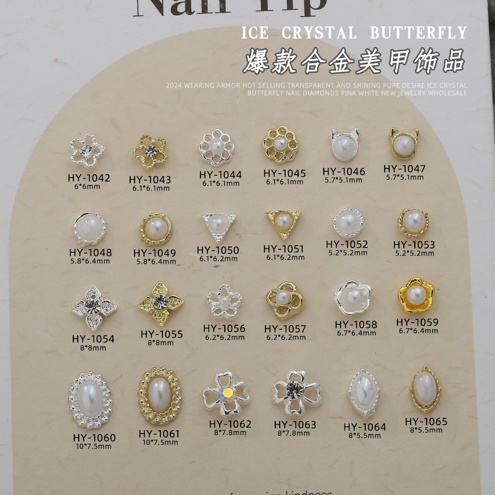 クロスボーダーの人気シンプルな金銀色の真珠の花の合金のネイルアクセサリー