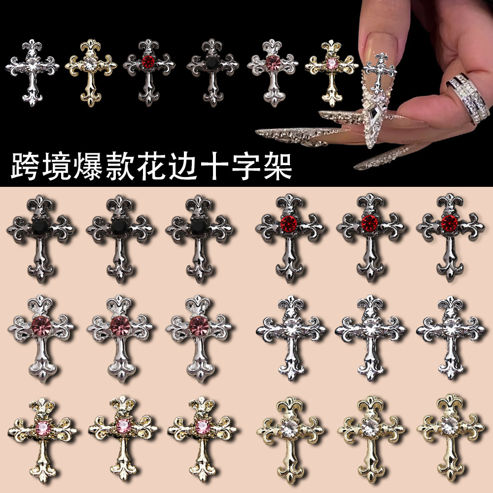 クロスボーダーホットスタイルレースクロスネイルアートアクセサリーダークスタイルクローハート立体ダイヤモンドクロスネイルデコレーション