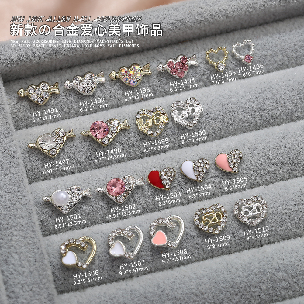 ネット赤爆金520七夕ネイルアクセサリーバレンタインデー透かし桃心爪ドリル超フラッシュ愛ネイルアクセサリー