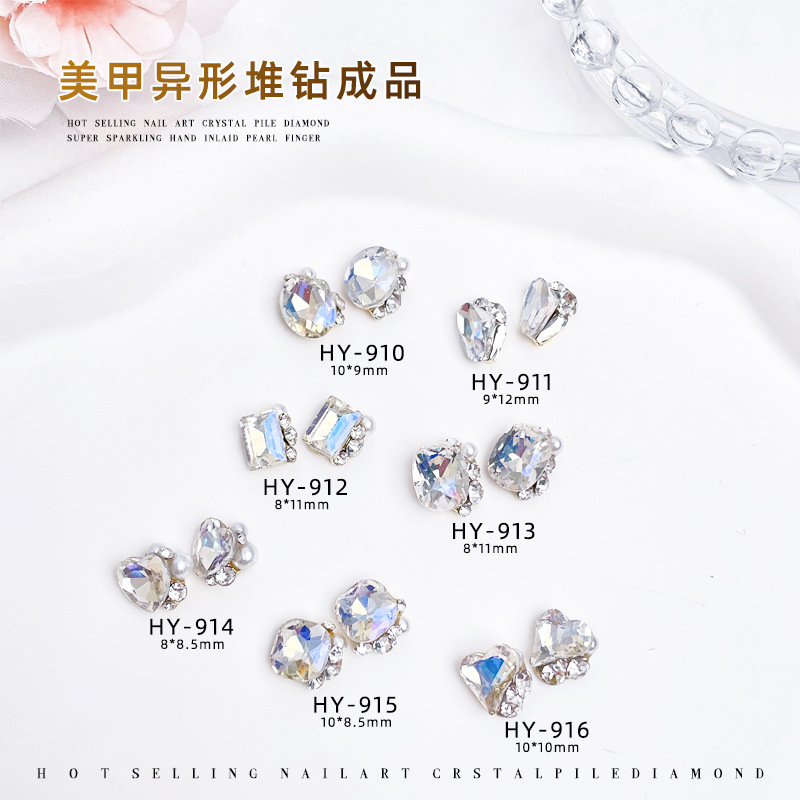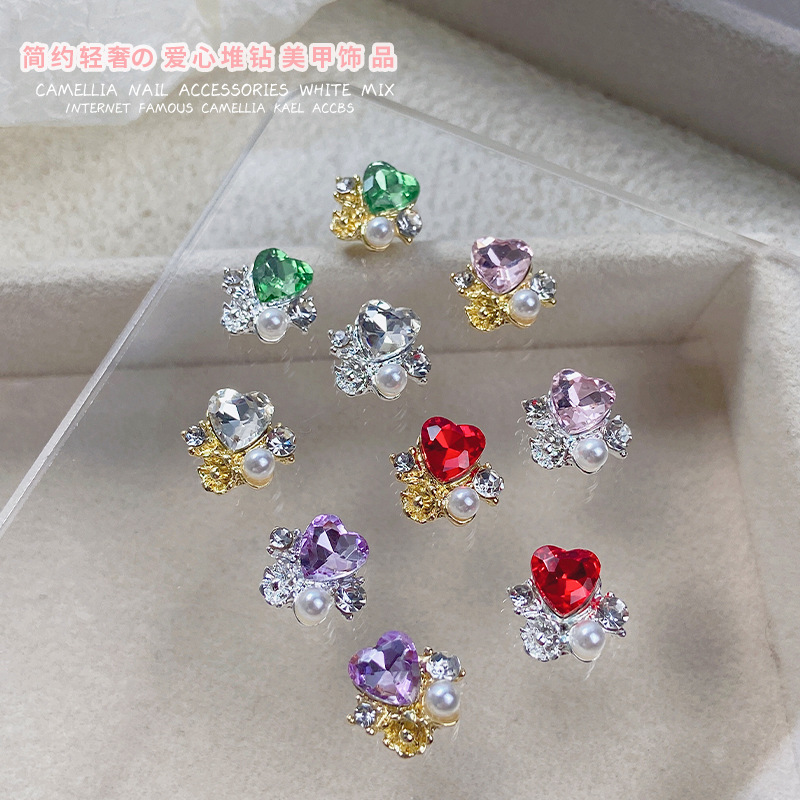 国境を越えて爆発した超フラッシュカラー愛ネイルアートの積み重ねドリルアクセサリーの立体的な真珠桃心爪装飾アクセサリー