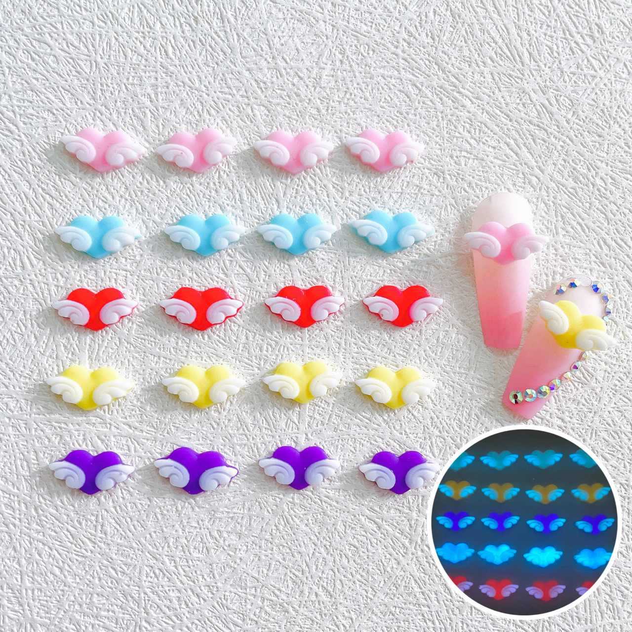 爆発的な夜の愛の天使の翼漫画樹脂ネイルアクセサリー夢の天使の翼diyカード発行材料