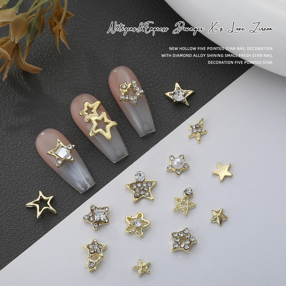 国境を越えて人気のある金色の五芒星合金ネイルアクセサリー