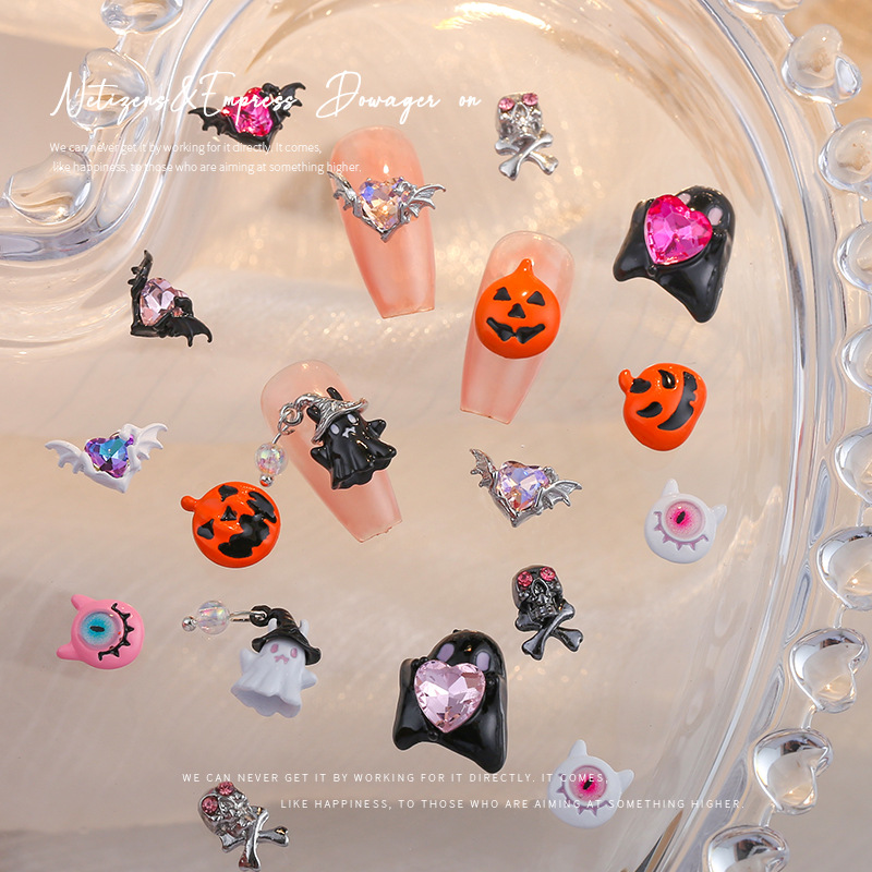 新型ハロウィーンネイル合金の個性的な油のアクセサリーのカボチャの頭のスカルのアクセサリーのメッキの爪のドリルの卸売り
