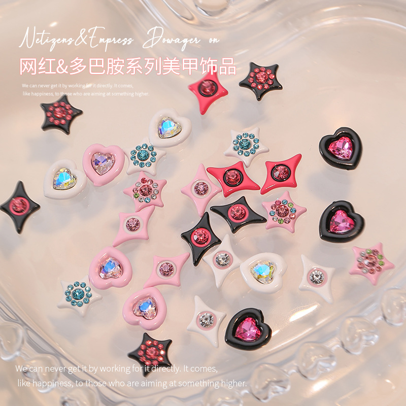 ドーパミン愛五角星ギャル女の子ネイル合金アクセサリー塗装アクセサリー立体膨張モザイクカラードリル