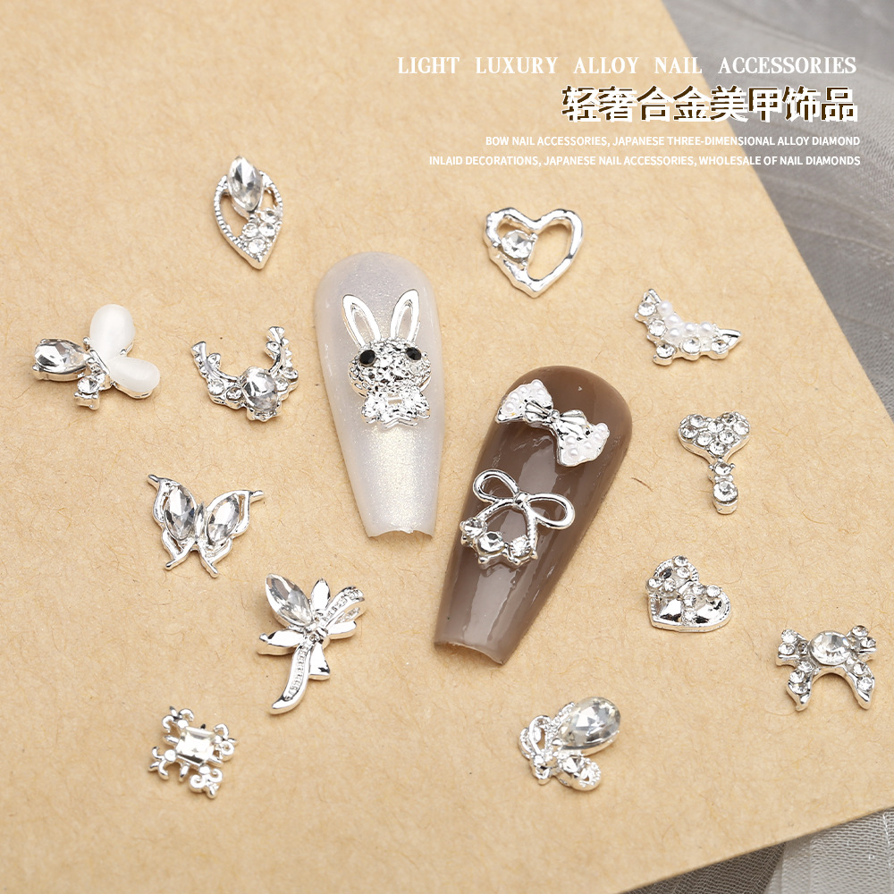 ネット赤爆金蝶ネクタイ合金ネイルアクセサリー超フラッシュ愛立体ウサギ蝶金属爪装飾品