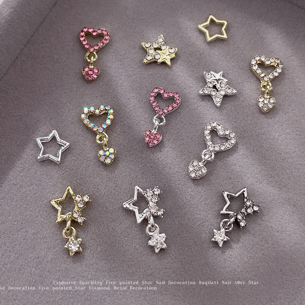 爆金ネイルアクセサリー五芒星lz合金日系超フラッシュ立体ダイヤモンド星愛ペンダント爪装飾