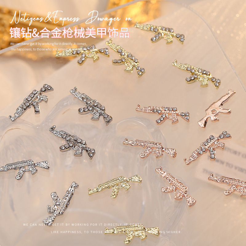 国境を越えた新しいネイルアクセサリーにドリル銃を入れて合金金属爪を飾ってジェダイの武器モデルをシミュレートする