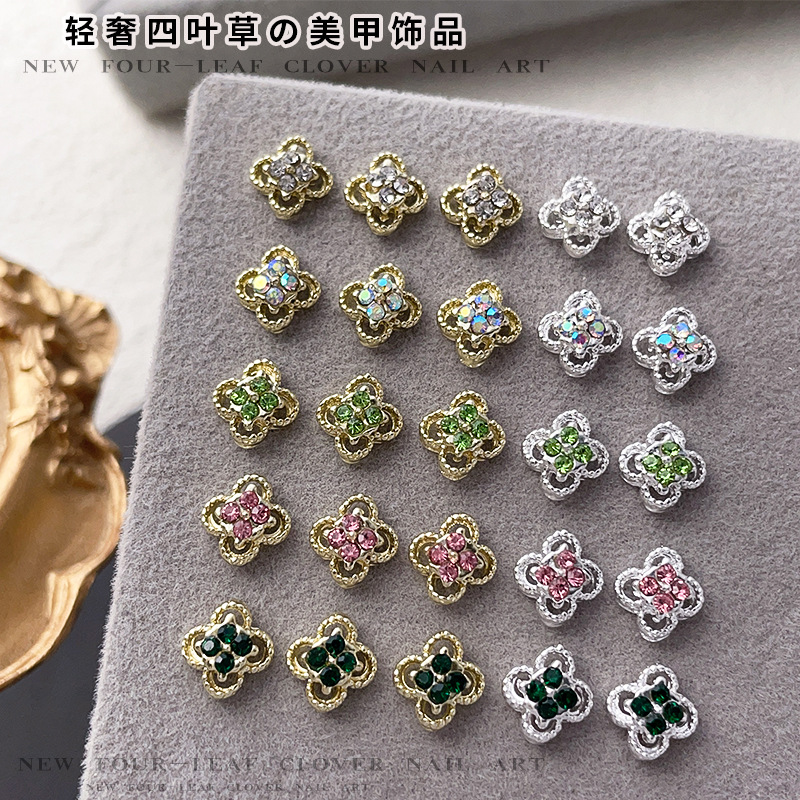 国境を越えて起爆したカラー四葉草ネイルアクセサリーは贅沢な宮廷風熹妃美甲ドリル花爪装飾品である