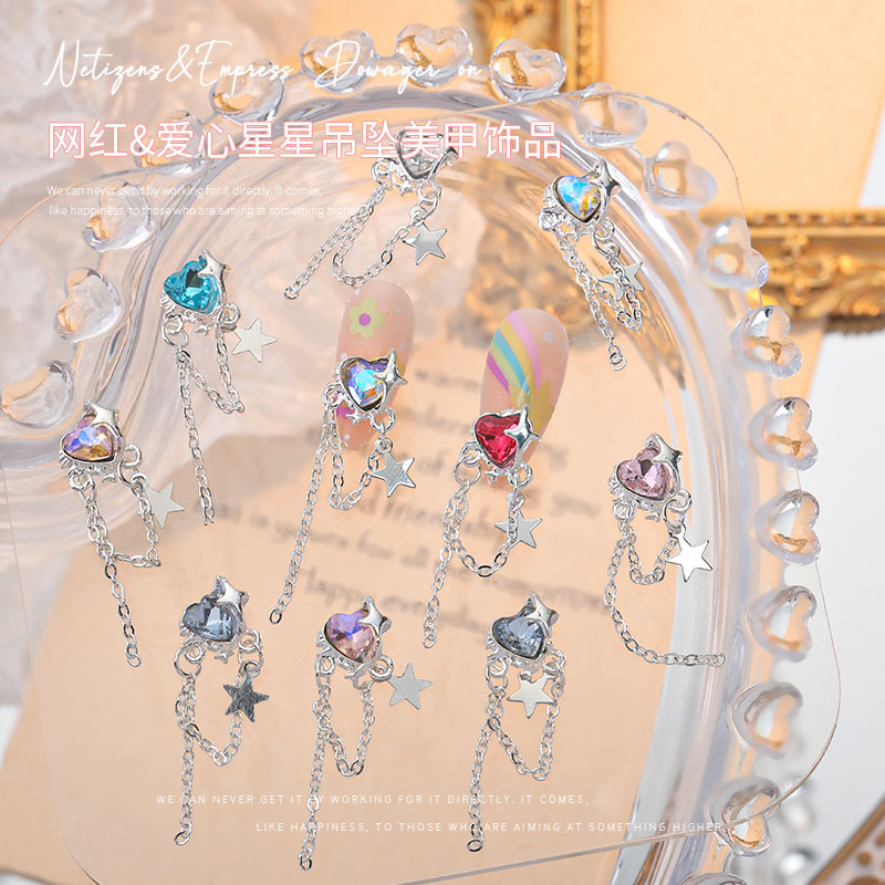ネット赤爆金ネイルアクセサリー新愛合金ドリル星ペンダントチェーン爪ドリル装飾品アクセサリー