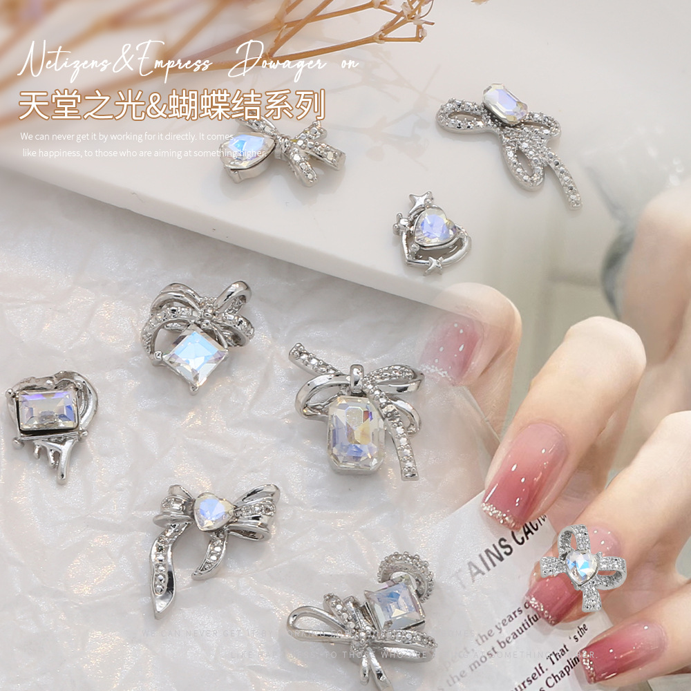新商品のネイルアートの金属のアクセサリーの真珠の新型の愛の蝶結びの爪のドリルの熊のドリルの混合の装飾品の卸売り