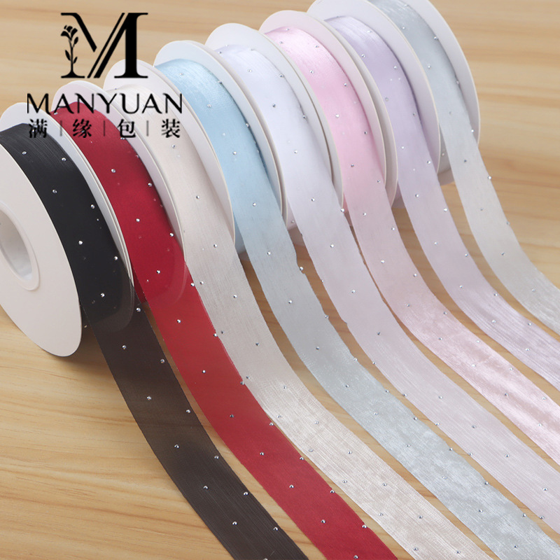 高級2.5cmドリル付きシルクリボン花プレゼント包装リボンdiy花芸花束ケーキ包装リボン