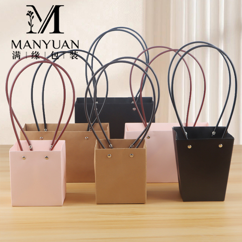 3.8女神節フラワーハンドバッグ 教師の日フラワーアート包装資材 防水コーティング牛革紙ハンドフラワーバッグ
