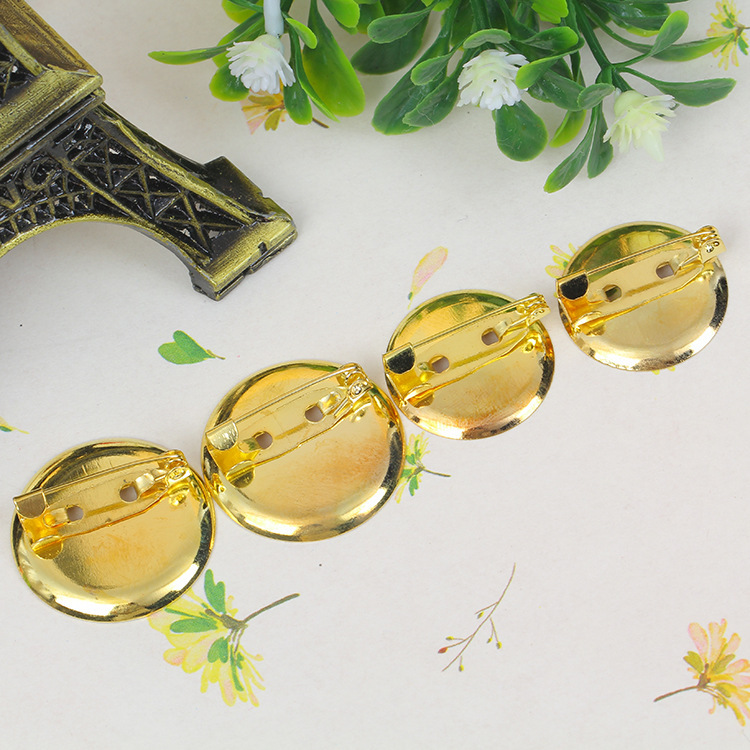 メーカー直髪金色円盤ピンダブル用トレイブローチDIY胸花底トレイアクセサリー卸売り