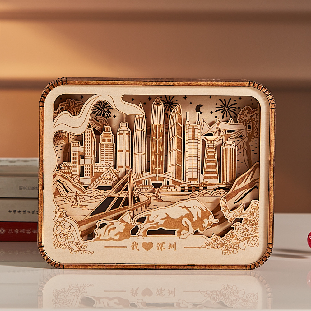 ☺ 広州深セン成都木彫りランプクリエイティブギフト diy ナイトライト都市印象文化クリエイティブ工芸品テーブルランプ