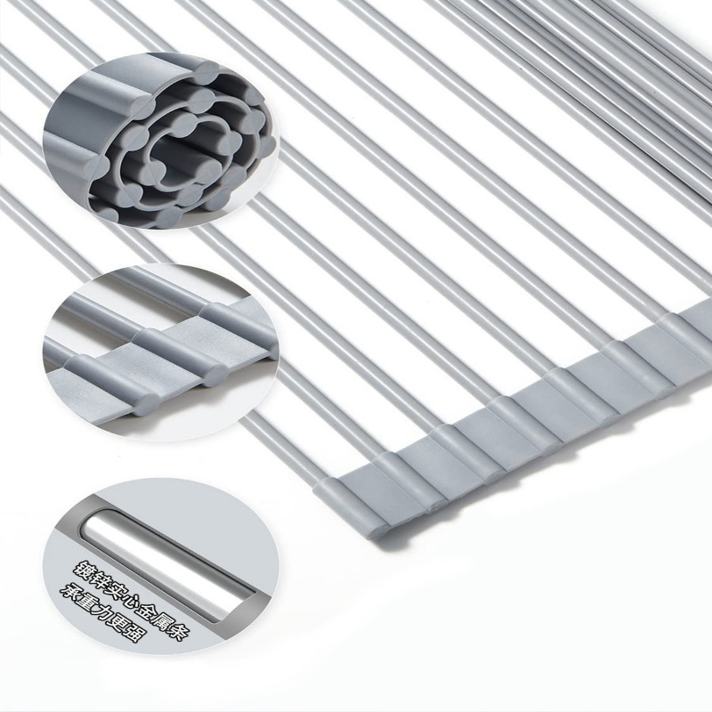 折りたたみ式シリコンキッチンシンク水フィルターラックローラーブラインド収納ラックロール可能なシンク断熱ボウルとカトラリー果物と野菜水切りメーカー