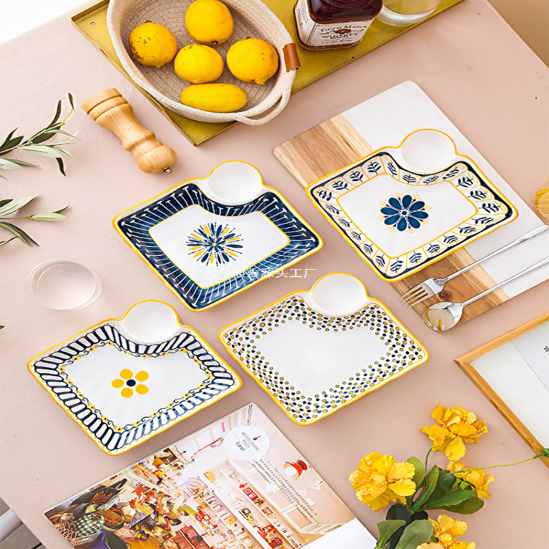 酢皿付き餃子皿、家庭用子供用朝食皿、フルーツ皿、和風高級食器、餃子皿メーカー