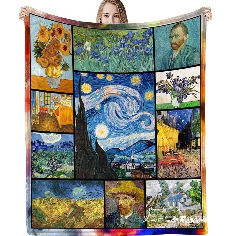 アマゾンの人気ゴッホのテーマは毛布を投げて、油絵はプリントの模様の毛布をつなぎ合わせて、贈り物の正方形の毛布は柔らかいです。