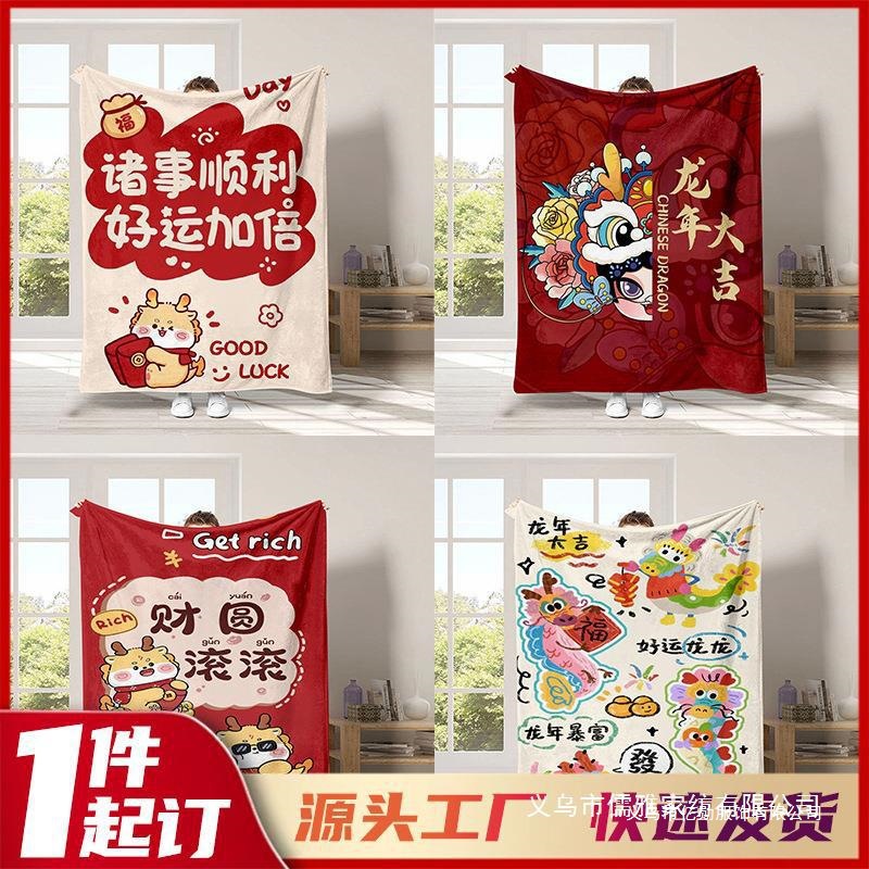 2024年新商品龍行大運毛布ソファーオフィス昼寝厚い毛布中国紅3dプリント毛布