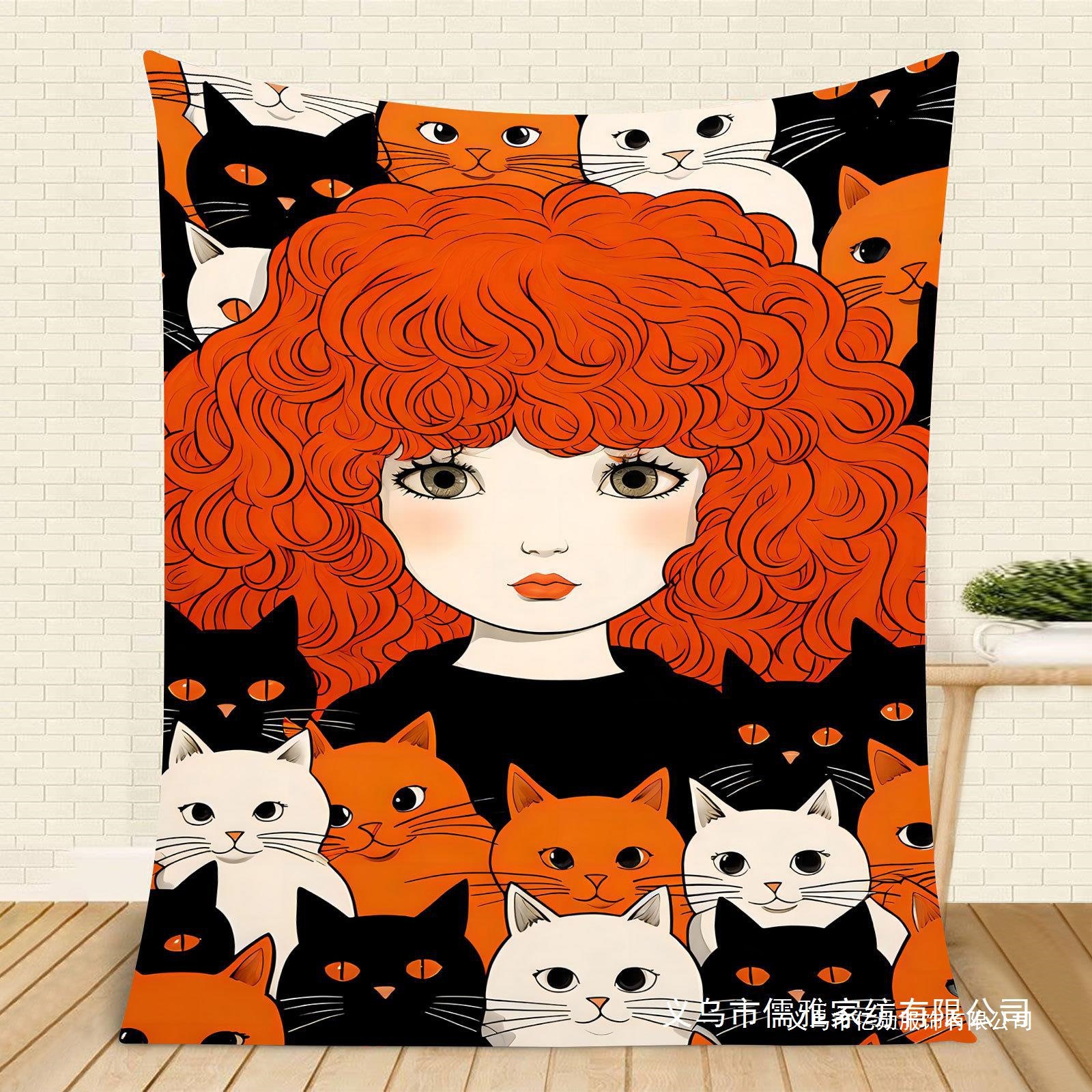 女の子と猫が国境を越えたフランネル毛布エアコン昼休み毛布旅行便利毛布現代シンプル億勲服装
