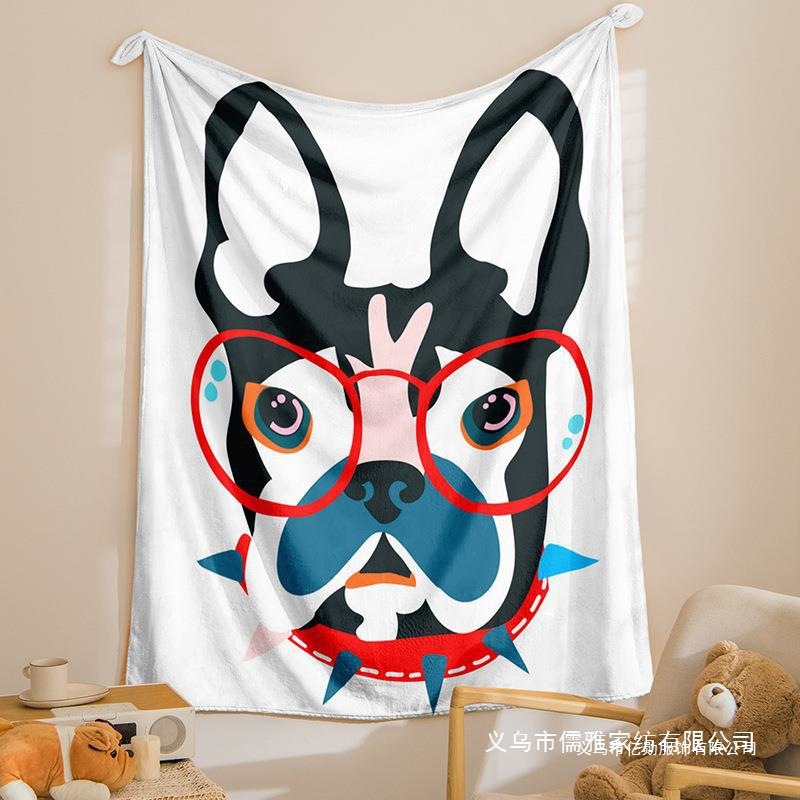 フランネルブランケット昼寝レジャーブランケット夏の空調コーラル絨毯子漫画犬両面絨毯