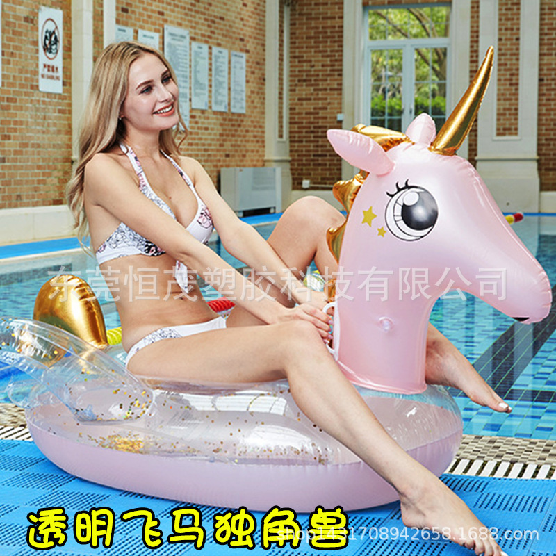 水上フローティング透明スパンコールインフレータブルユニコーン座って大人水上アトラクションインフレータブル施設