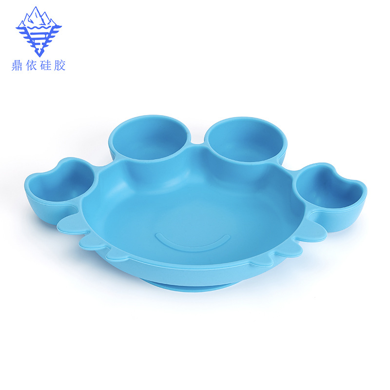 国境を越えて人気のある食品級カニの外形シリコン乳幼児用食器トレイ吸盤式滑り止め防水児童盤