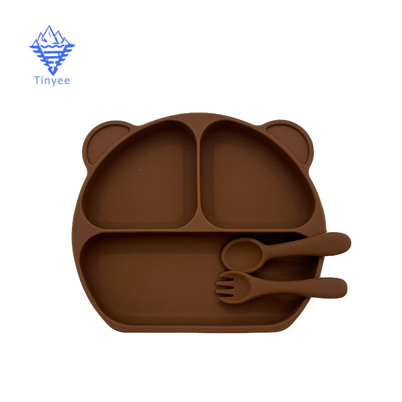 メーカー直販食品級熊外形シリカゲル乳児児童食皿トレースプーンフォーク補助食飼育食器