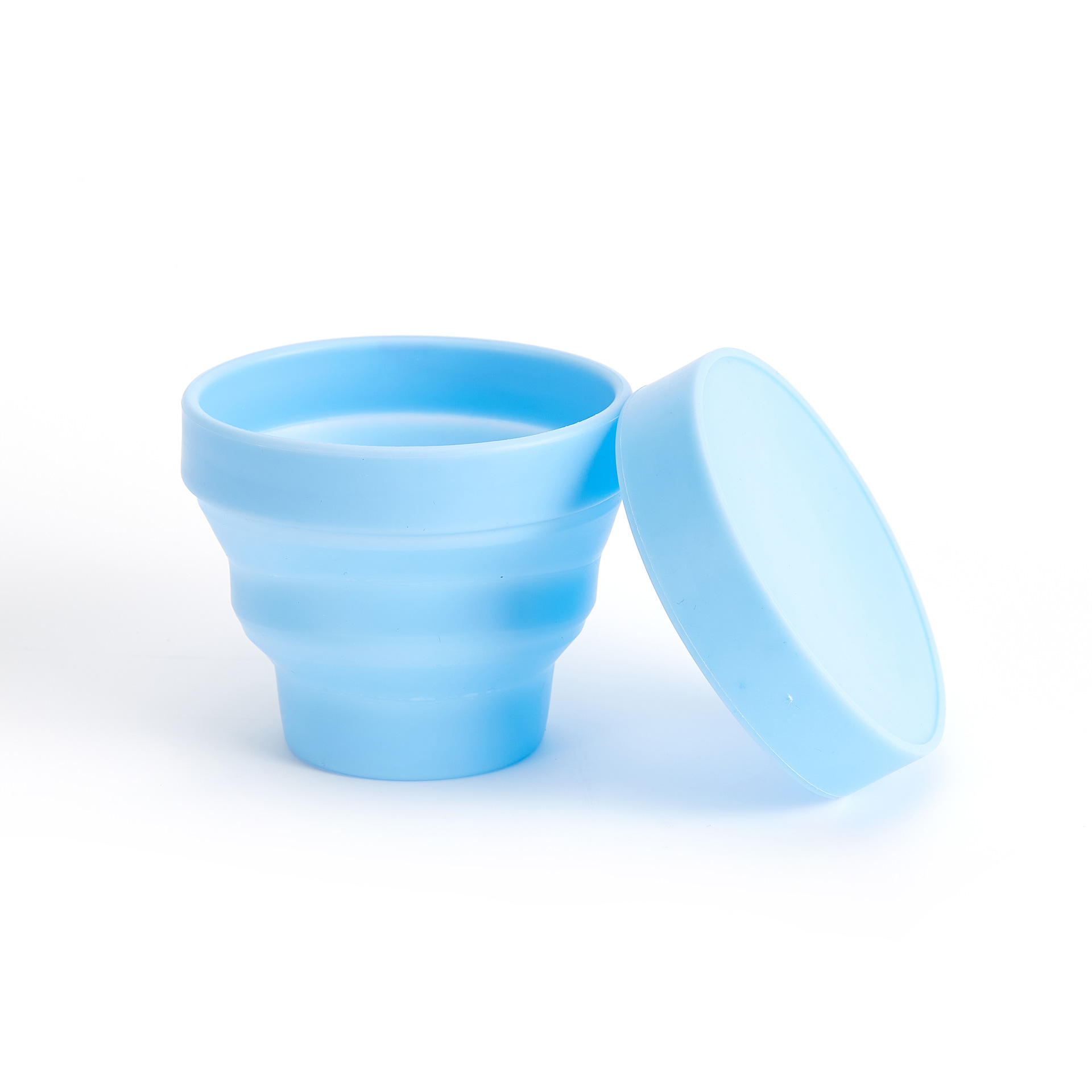 国境を越えて人気のある屋外旅行シリカゲル折り畳み可能なコップカップ付き蓋付き赤ちゃんの子供の飼育カップ卸売り