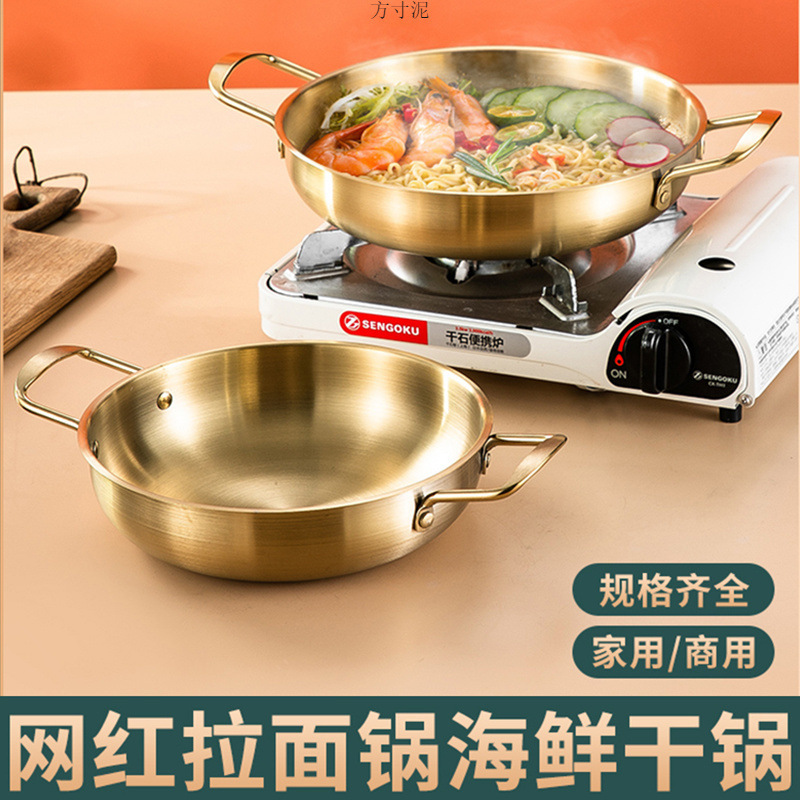 ネット赤金色小鍋304韓国式カップラーメン鍋両耳家庭用海鮮料理鍋シングル小鍋クロスボーダー卸売り