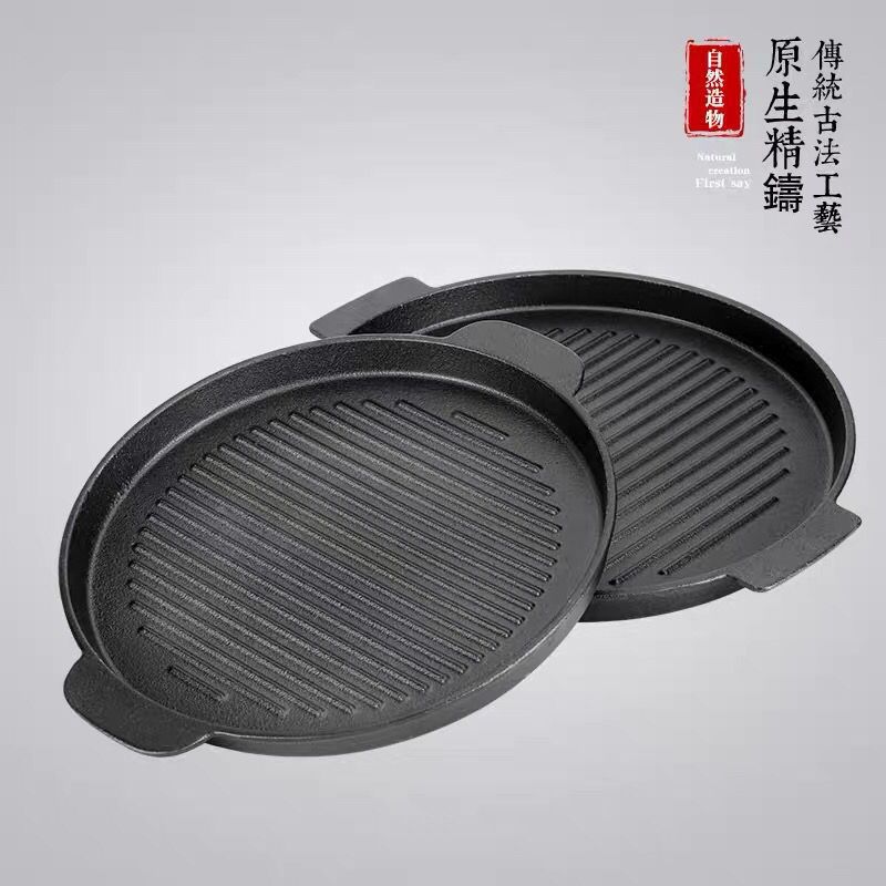 洋食鋳鉄の縞焼き皿を厚くして肉皿を焼く家庭用のステーキフライパン鉄板焼き皿の商用工場卸売り