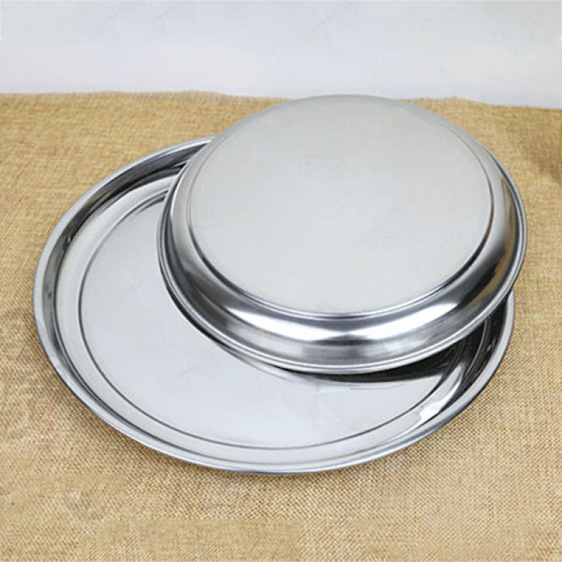 ステンレスの皿の円形の大きい円盤の浅い皿の平らな皿のバーベキューの皿の平底の料理の皿の果物の皿の大きいトレーのシャーシ