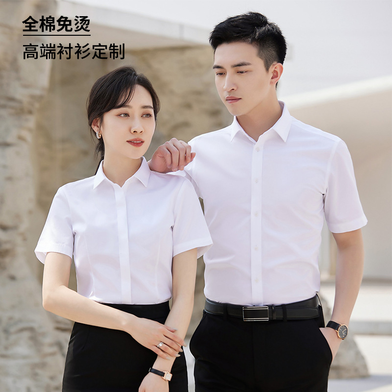 高級白色半袖シャツ春夏純綿シャツ作業服工装ビジネス男性服高級感無料カスタマイズ