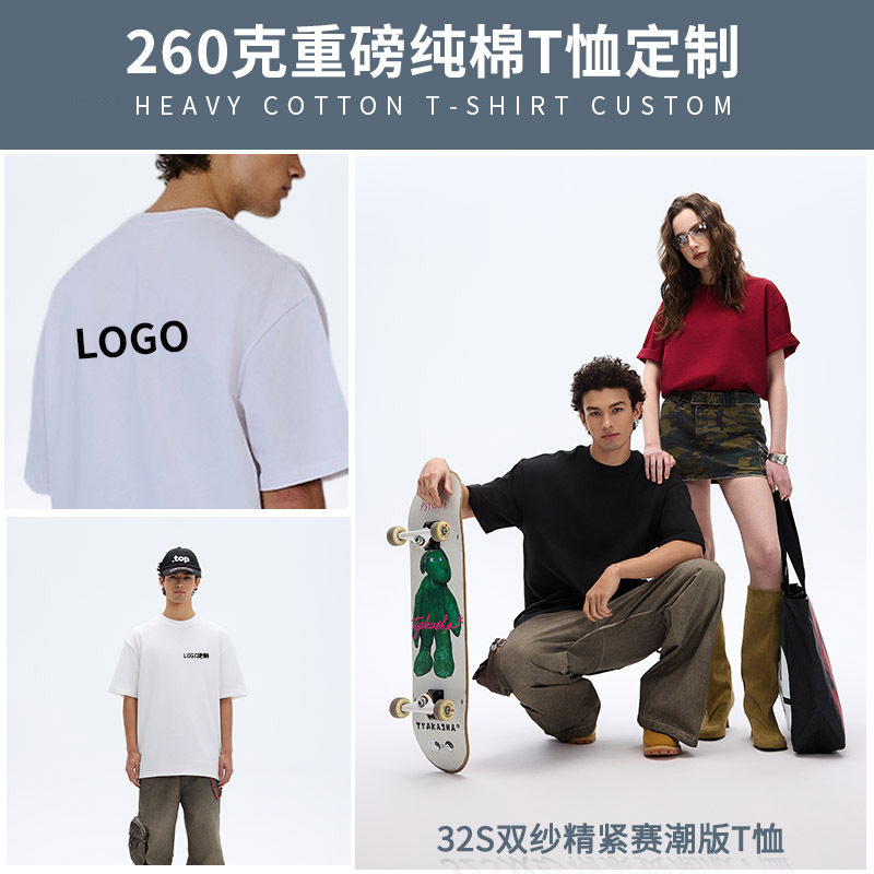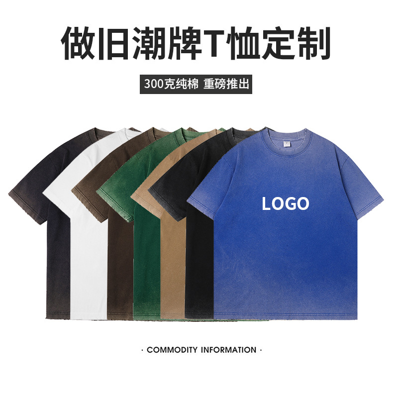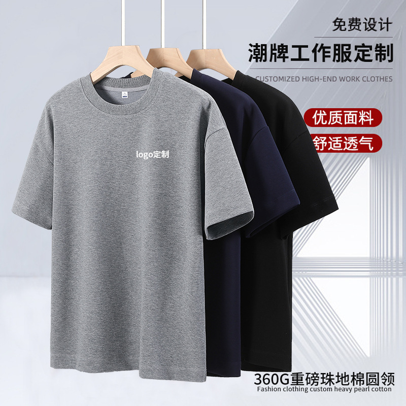 360グラム重ポンド珠地綿丸襟潮牌半袖tシャツ落肩ゆるい企業団体丸襟tシャツカスタム