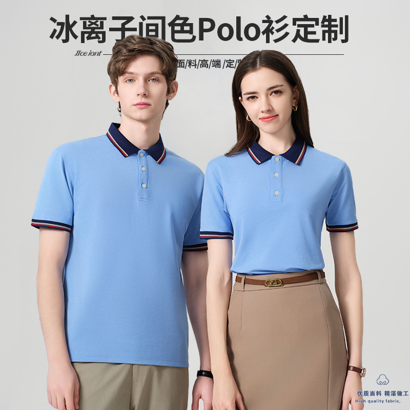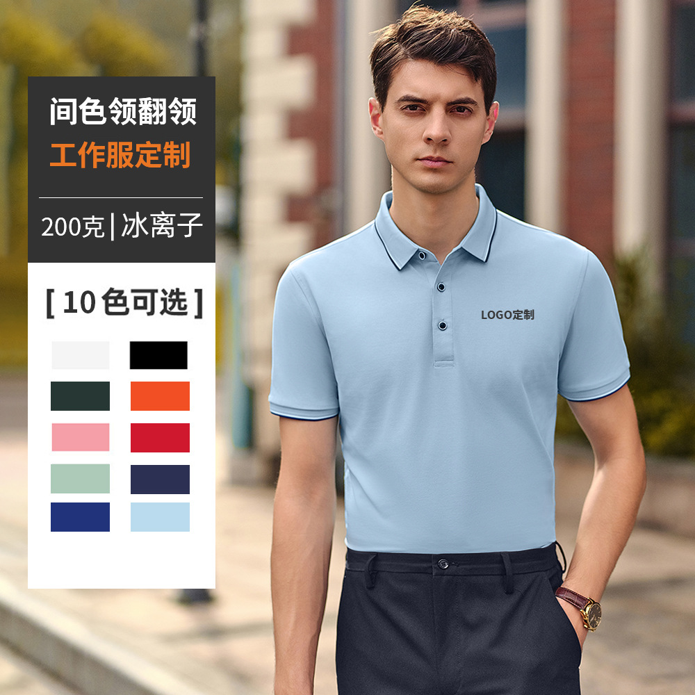 氷イオンビジネスポロシャツ印ロゴ夏半袖diy4s店工衣刺繍折り襟作業服カスタマイズ