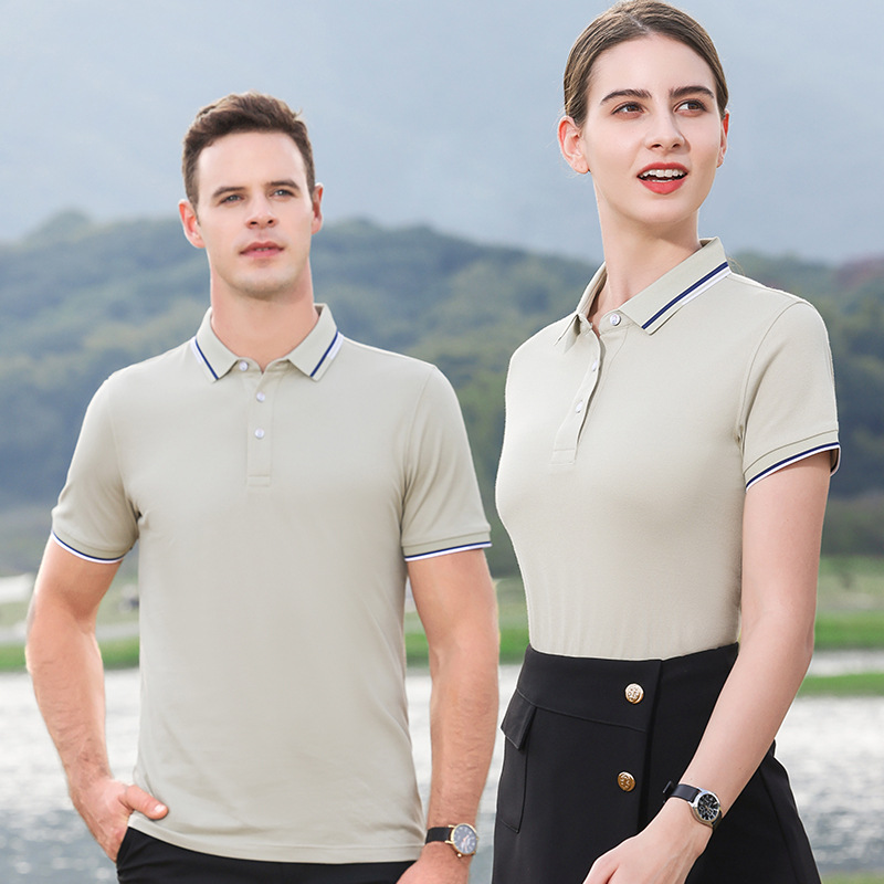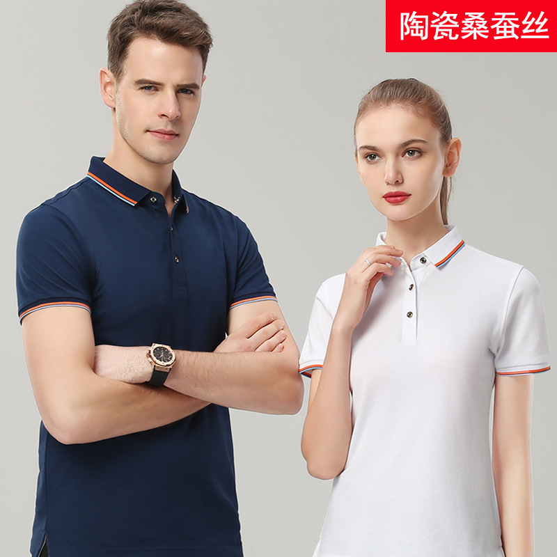 高級通気性吸湿発散性ビジネスTシャツ、折り返し襟半袖、夏用作業服、カスタムメイドの桑絹ポロシャツ