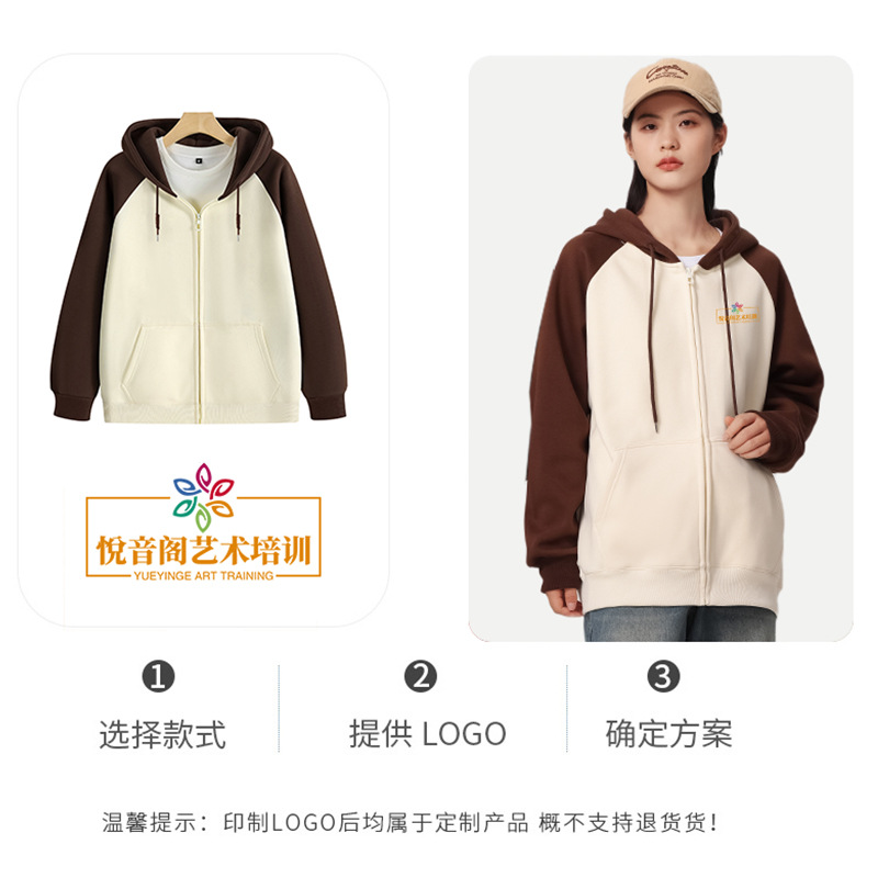 フード付き長袖研修機関作業服、ユニフォーム、団体服、クラス服、ジャケット、裏起毛スウェットシャツ、カスタムロゴ印刷