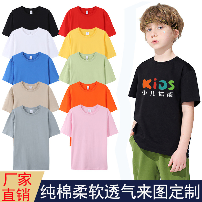 200グラム肩袖爽やか通気夏キャンプ幼稚園親子運動会班服純綿児童tシャツカスタム