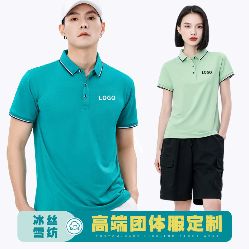 氷糸涼感機洗濯変形しない半袖襟返し班服広告シャツ作業服poloシャツ工衣カスタムロゴ